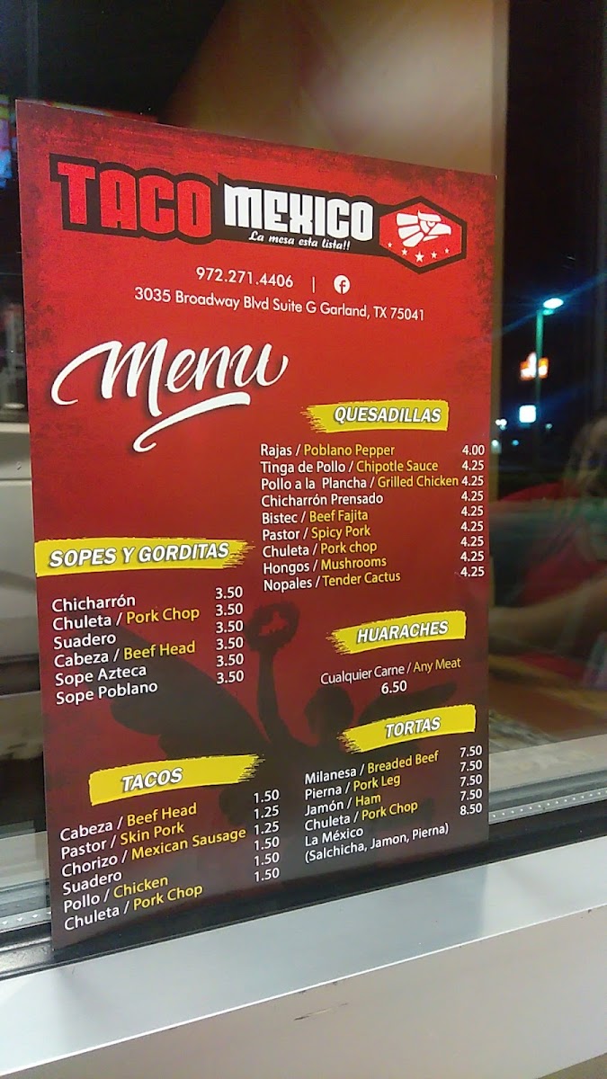 Taco Mexico offers a straightforward, inviting menu that reflects the comforting simplicity of traditional Mexican home cooking. Here, you’ll find a variety of casual bites that feel perfect for any time of day — from satisfying tacos and warm soups like Menudo or Caldo De Rez to hearty favorites such as Torta Mexico and Enchiladas Ala Carte.